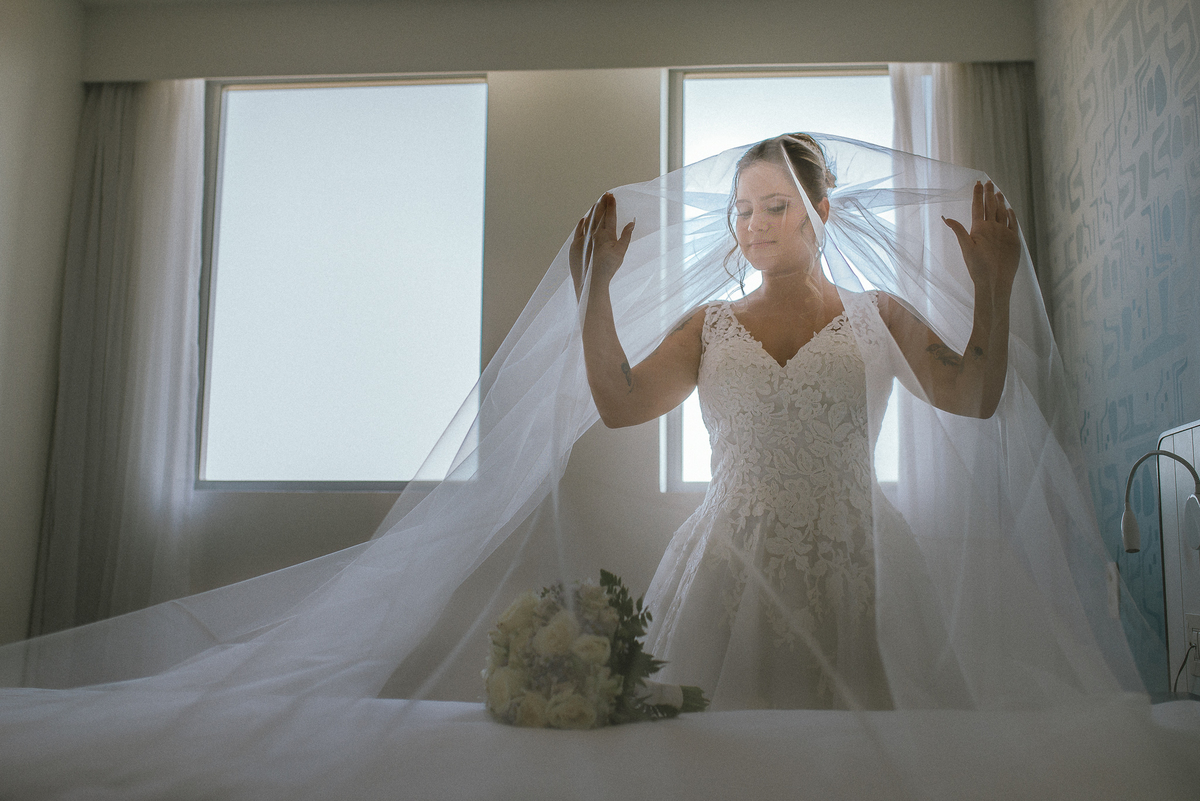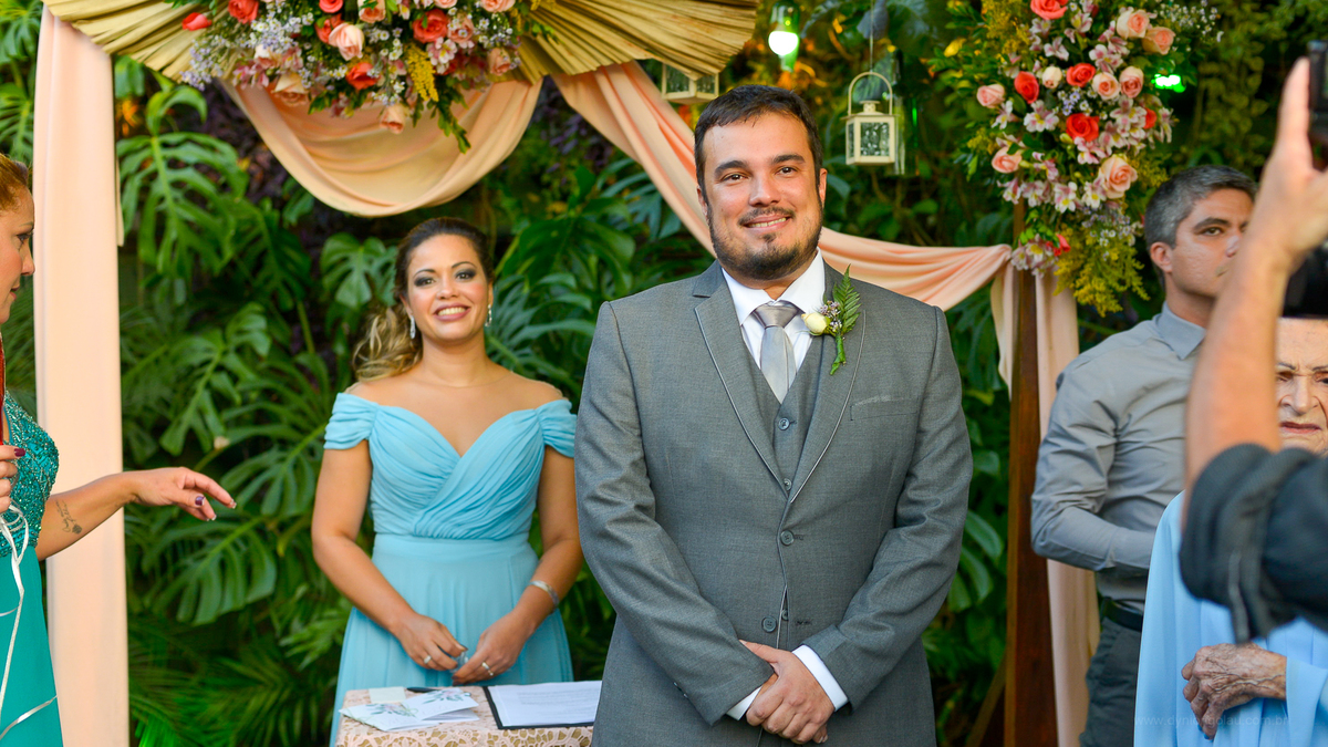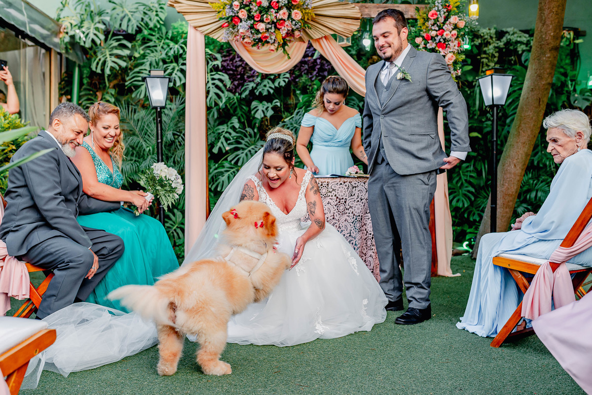 E que dia lindo, pessoas de uma energia incrível! O local escolhido pela noiva para o Making Off foi um hotel na beira da praia e tudo o mais. Teve até dog do casal entregando no meio da cerimônia e muito mais.